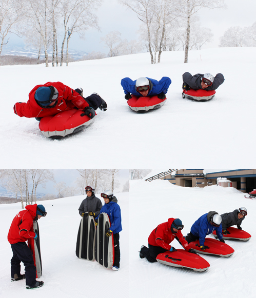 「エアーボード」は、うつ伏せになり頭を前にして滑る