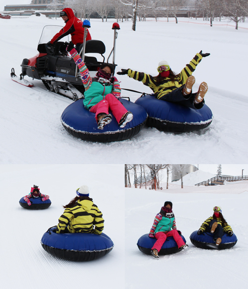 ドーナッツのようなチューブに乗って専用コースを一気に滑り降ります。